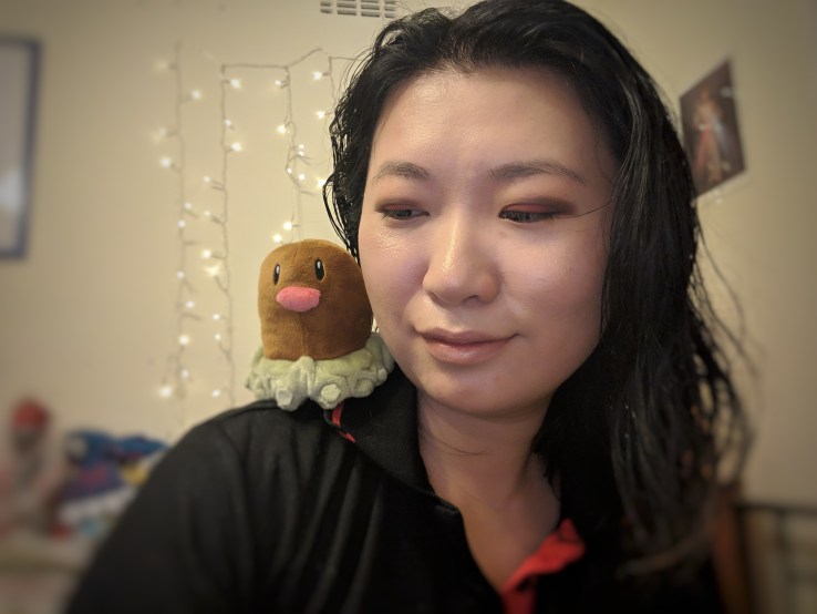 I wanted this look to channel a Diglett, but not wearable unless I was going to a convention. Diglett is a great Pokemon to based this on because the colour palette is very wearable!